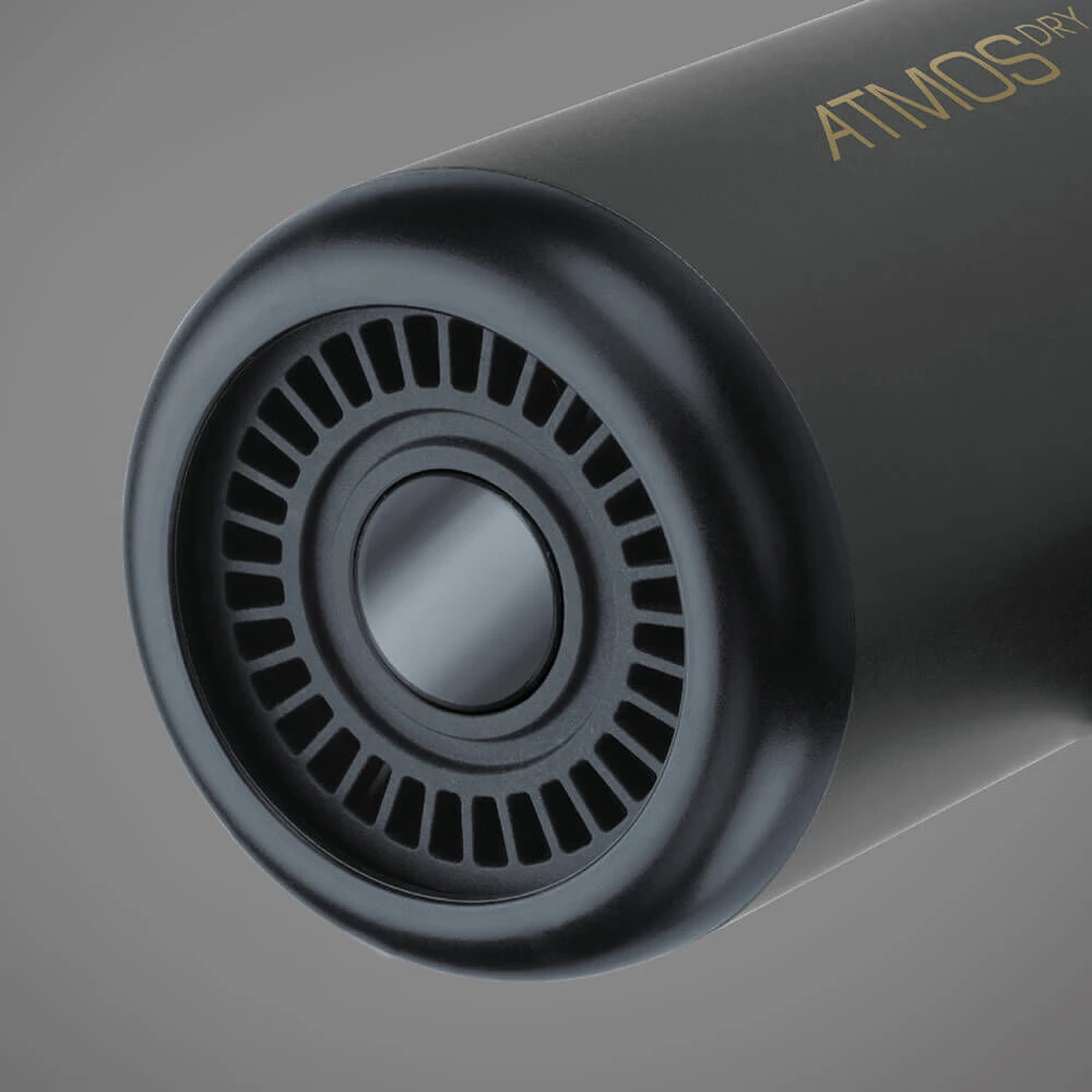 Ultra-Light. Ultra-Quiet. Incredibly Powerful. Experience the revolutionary Atmos range of dryers. The Atmos Dry has a 100,000 RPM brushless DC motor which has been expertly designed for ultra-fast drying with significantly less motor noise, allowing for a stress-free salon environment. Weighing a mere 350g, this digitally controlled 2000W dryer features 3 heats, 3 speeds and cold shot to vary your usage per hair type, coupled with the Atmos Plus Conditioning system to combat frizz and static. The dryer comes with a magnetic 6mm drying nozzle, an 8mm brush styling nozzle and a diffuser to volumise and promote natural curls. The dryers micro filter is washable and the heat-proof 3m cable comes with a cable-tidy and an EU converter plug.