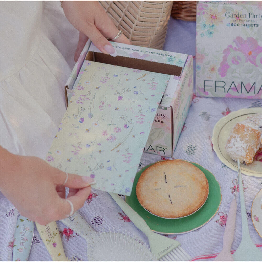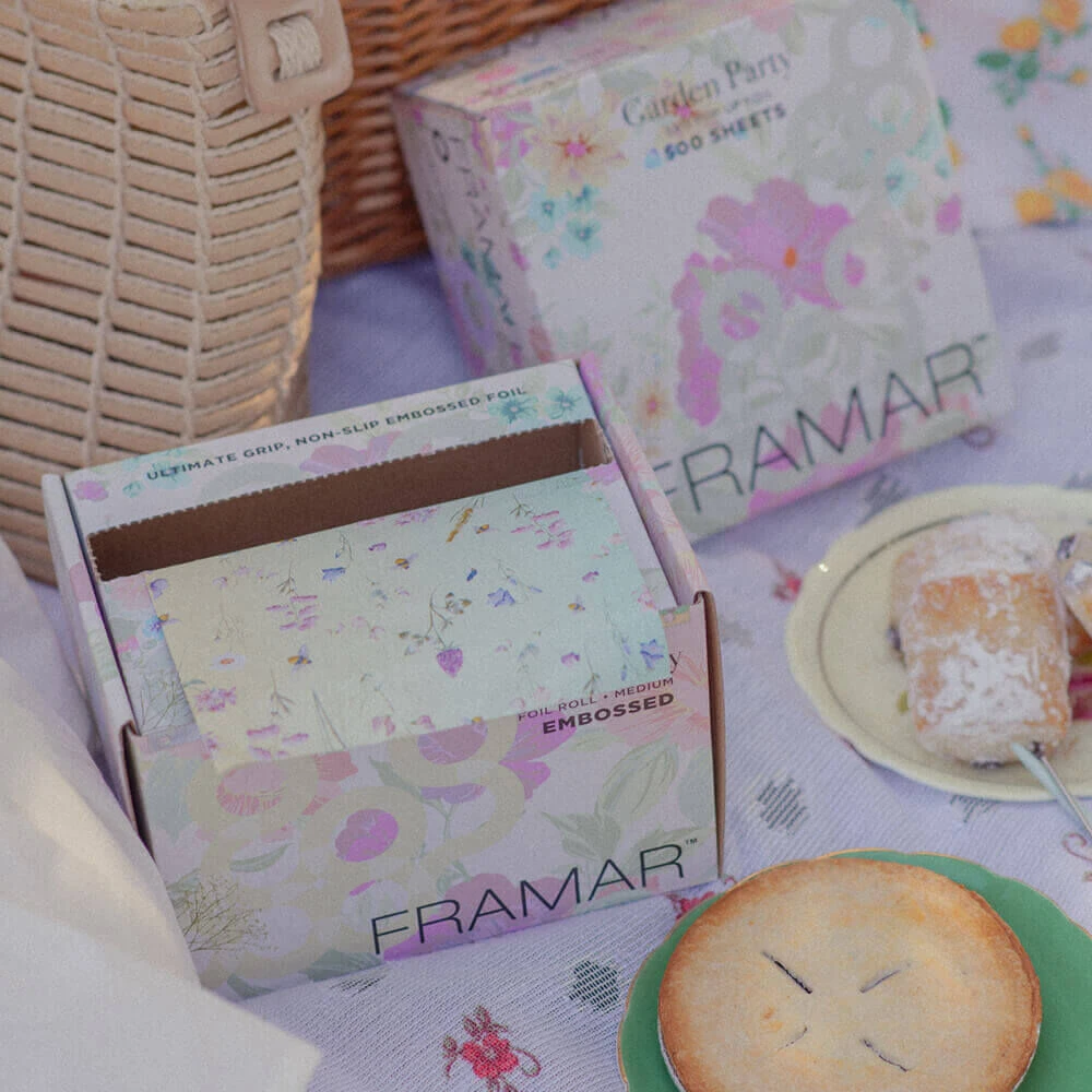 Let the good times roll! The Framar Garden Party Embossed Foil Roll can be cut to any length, making in great for long hair and to help minimize waste. Complete with it’s own dispensing box with blade for easy use. The embossed texture grips hair so that you can breeze through any colour service. 320ft, medium weight.