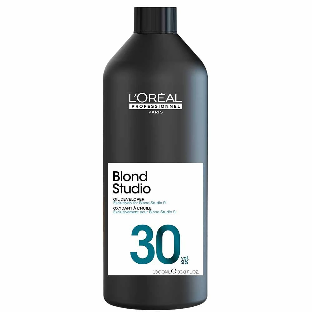 The 30-Volume Oil Developer is to be used on lengths and ends only. Blond Studio 9 Oil Developer is to be mixed exclusively with Blond Studio 9 Lightening Powder.