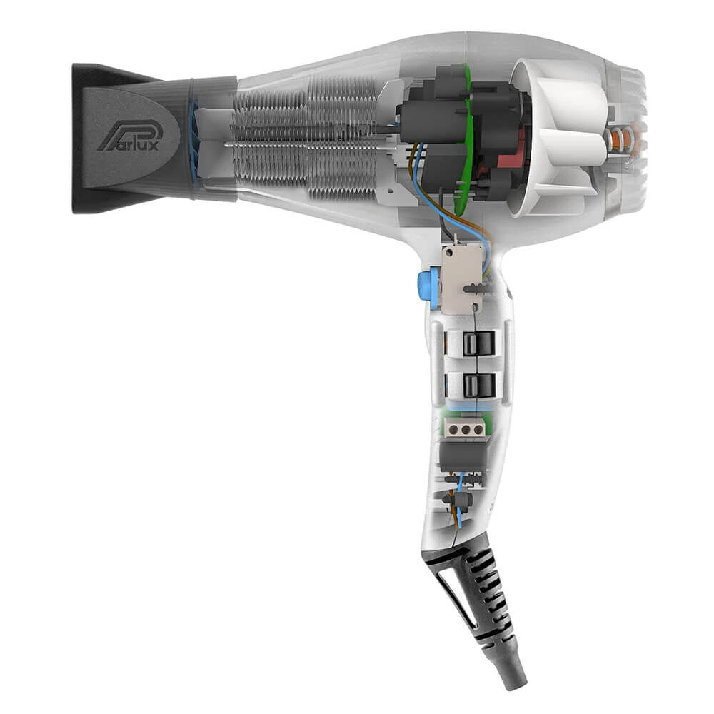 The heart of the new hairdryer is the professional digital motor, very light, newly developed and with a longer life-span, 2400 watt of power (most powerful Parlux yet!), an air flow of 88 m3/h.