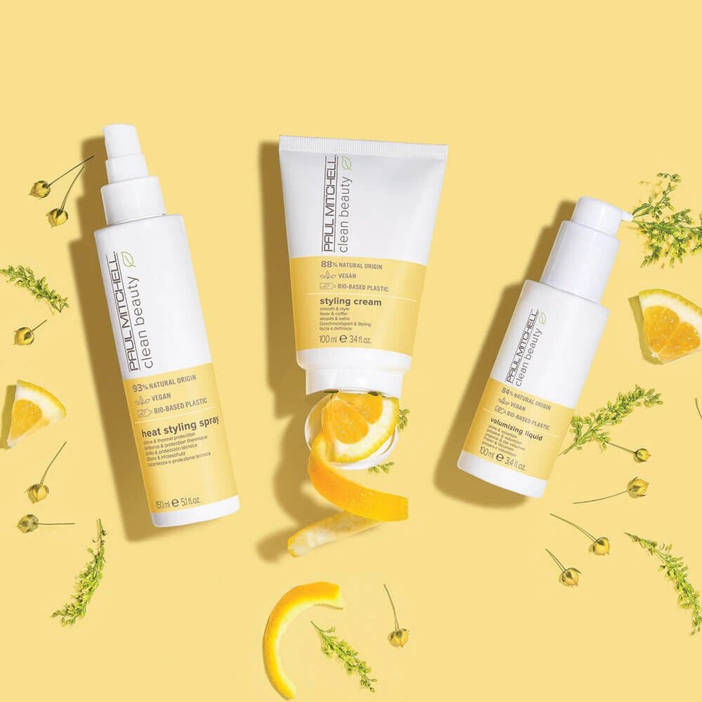Paul Mitchell® Clean Beauty is part of a commitment to a more sustainable future. Combining clean formulas, organic botanicals and innovative bio-plastic packaging, Paul Mitchell® Clean Beauty offers natural solutions that are good for hair and good for the planet. Handcrafted using the highest level of natural origin ingredients, the cruelty-free, vegan formulas have the clean ingredients you want, without the ones you don’t. The style formulas feature flax seed packed with omega fatty acids and antioxidant-rich ferulic acid. Enjoy a subtle apple scent with notes of lavender, lemon and honey, as these styling essentials help nourish, strengthen and protect hair against external stressors.