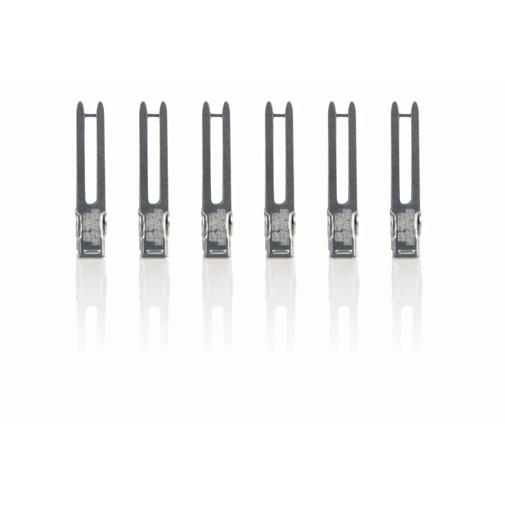 The Salon Services Curl Clips are made from lightweight aluminium. Rust-free. Extra strong steel spring. Two prong and supplied in a pack of 72.