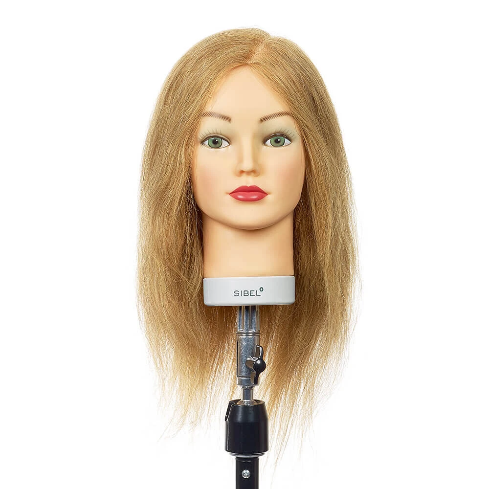 The Sibel Eleanor Manikin Head is ideal for hair colour and styling training practice, and is made from synthetic hair in blonde. The hair is implanted diagonally (at an angle of 30° to 60°) for a more natural look. This method of implanting comes closest to a real human head.