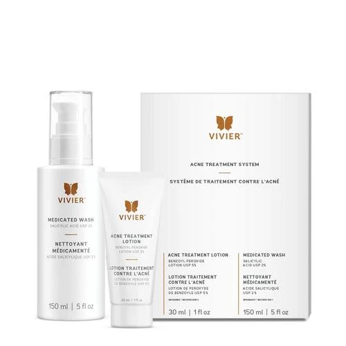 The Vivier Acne Treatment System is an easy-to-use 2-step system specially designed for the treatment of teenage and young adult acne. This System contains two full-sized pharmaceutical-grade products that are effective and easy to use. The SkinTx Acne Treatment System is the only acne-clearing system containing a unique combination of Hexamidine, 2% pharmaceutical grade Salicylic Acid, and 5% pharmaceutical grade Benzoyl Peroxide to help reduce the frequency and severity of acne breakouts and prevent the formation of blackheads and whiteheads.