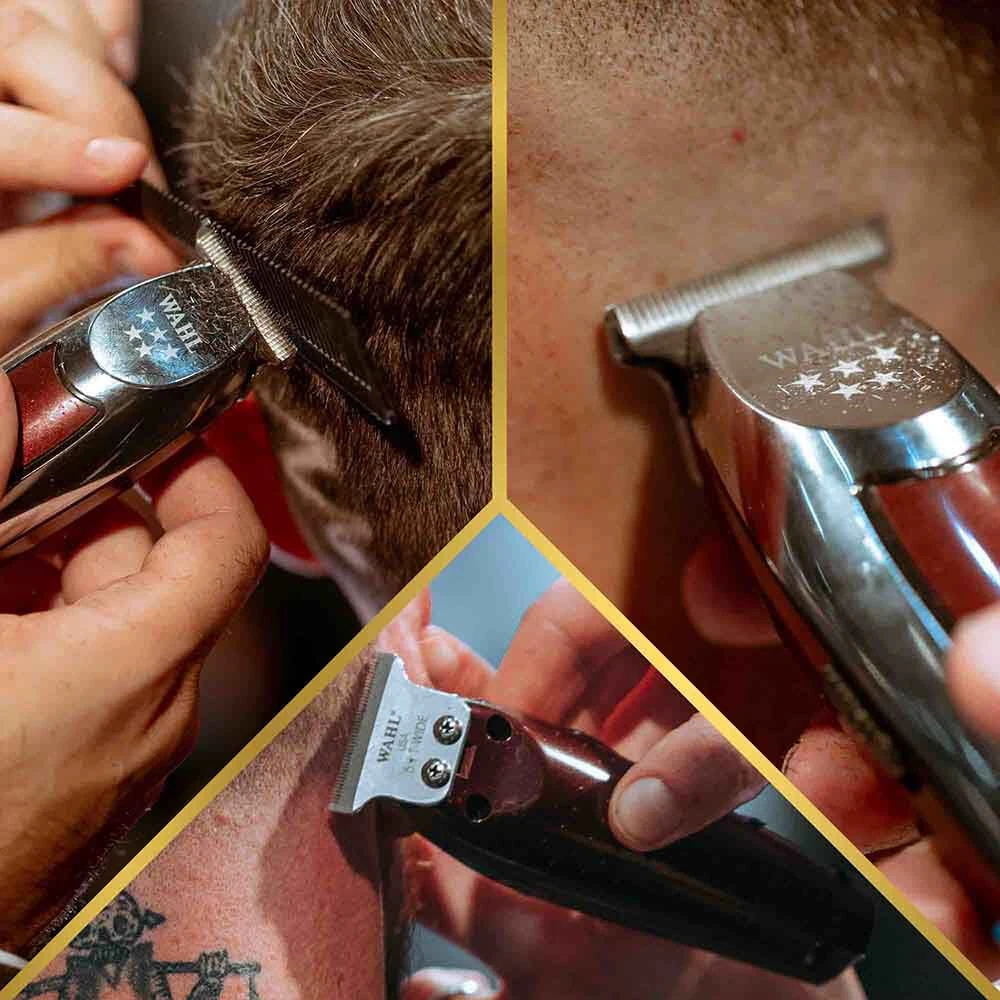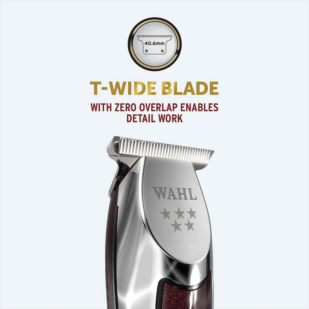 The Wahl Cordless Detailer Li has a close cutting extra-wide T-Shaped blade that enables straighter shape-ups and produce faster cutting results than a standard trimmer blade.
