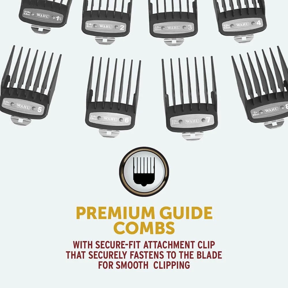 The Premium Guide Combs are 70% stronger than standard guide combs. The Secure-Fit stainless steel attachment clip securely fastens to the blade for smooth and easy clipping, so you can seamlessly glide through hair.