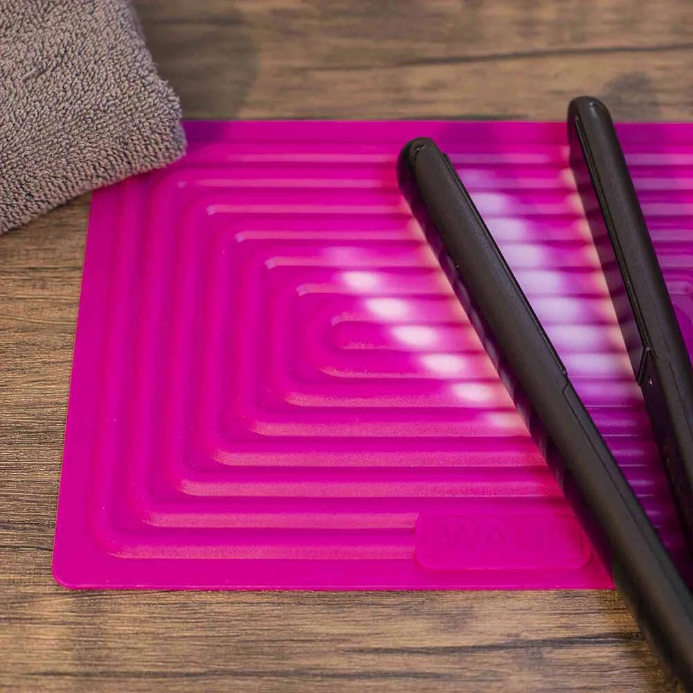 The silicone has a grip which reduces slipping and movement and flexibility which allows your heat mat to become a storage wrap for hot appliances – simply roll it around the hot areas of the product.